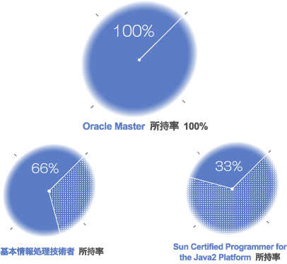 Java言語に強く3分の1以上の技術者がSun Microsystems社のJava認定資格を所有しています。 |